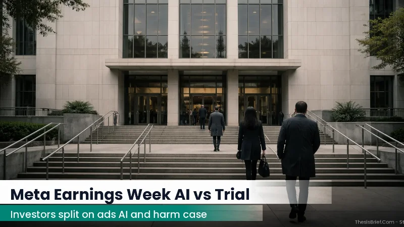 Meta enters earnings week with an investor split between AI monetization upside and a courtroom test of product harm claims